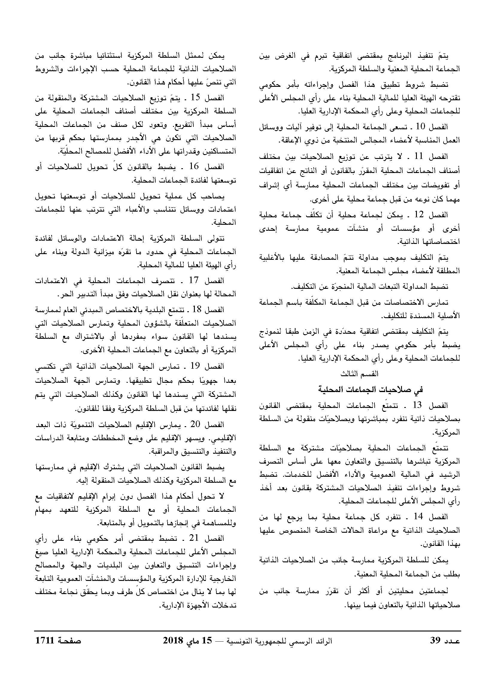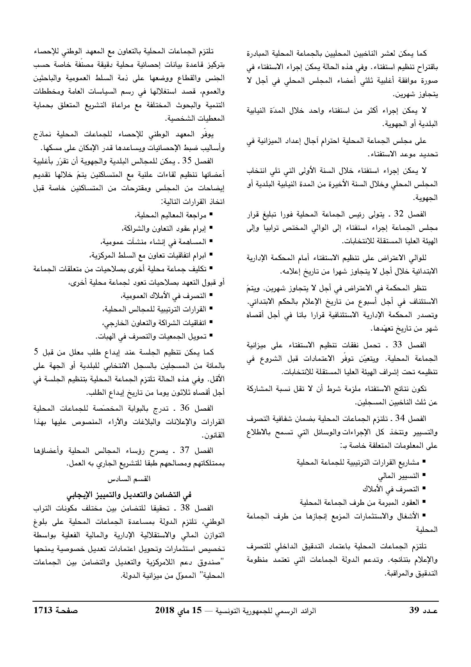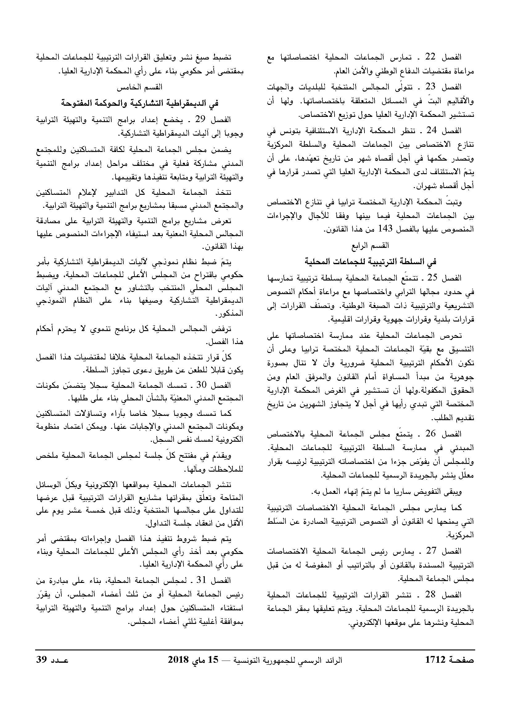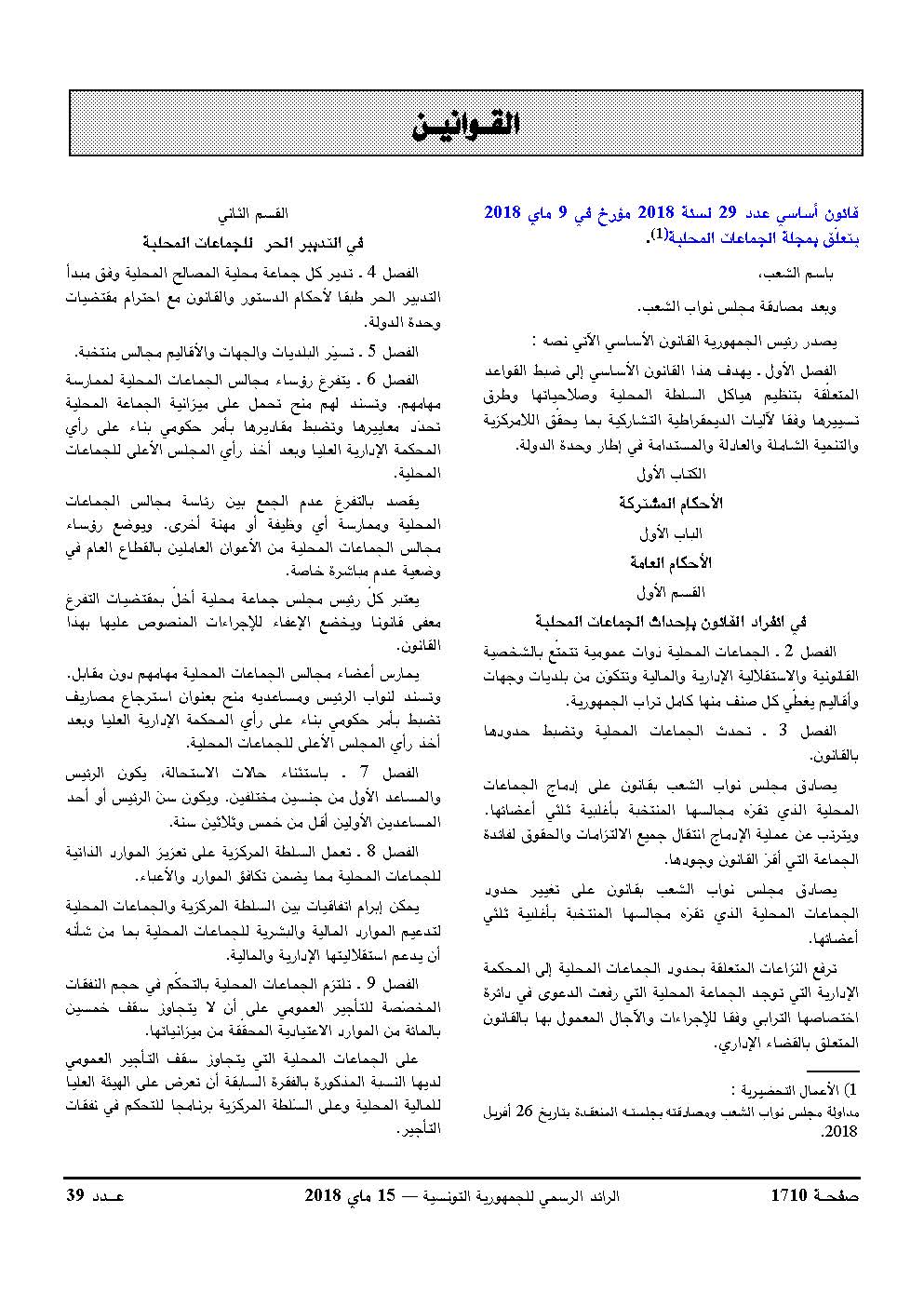 قانون أساسي عدد 29 لسنة 2018 يتعلق بمجلة الجماعات المحلية
